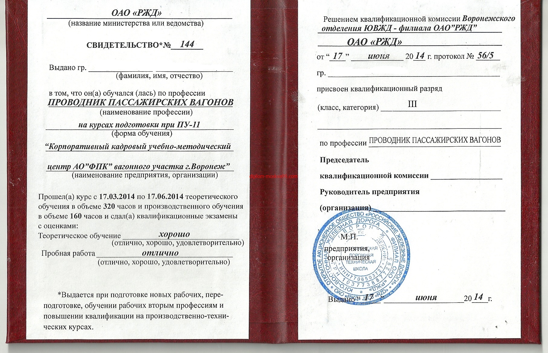 Свидетельство проводника, осмотрщика и специалиста по ремонту вагонов купить за 1-2 дня. Курсы для работников РЖД.